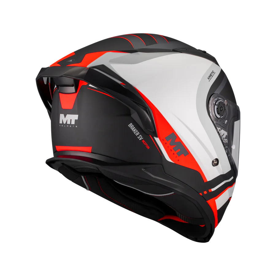 Kask integralny MT Braker SV to nowoczesny model zaprojektowany z myślą o motocyklistach oczekujących wysokiego poziomu bezpieczeństwa, komfortu oraz funkcjonalności podczas codziennej jazdy. Wytrzymała skorupa wykonana z materiału HIRP w połączeniu z certyfikatami ECE 22.06 i DOT gwarantuje skuteczną ochronę, a aerodynamiczna konstrukcja ze spojlerem poprawia stabilność przy wyższych prędkościach. To uniwersalny kask integralny, który sprawdzi się zarówno w mieście, jak i na dłuższych trasach.