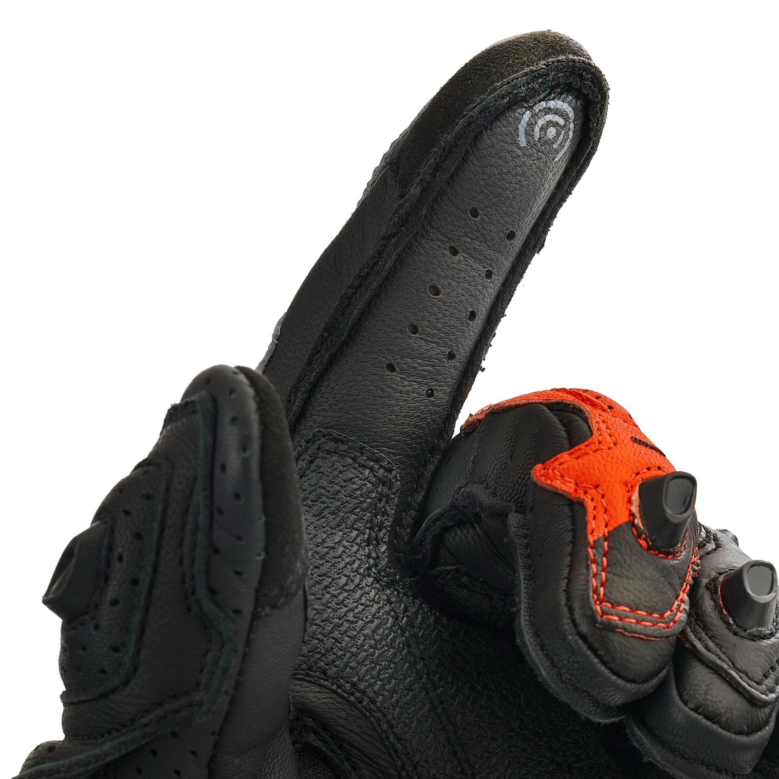 - Perforowana skóra na zewnętrznej i wewnętrznej stronie dłoni