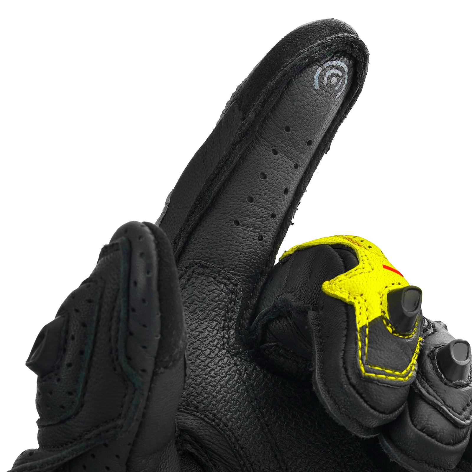 • Perforowana skóra na zewnętrznej i wewnętrznej stronie dłoni